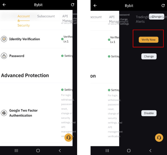 Account&security 접속 후 아래에서 " Identity Verification " 를"를 찾은 후 옆으로 화면을 밀어서 " Veryfy Now "를 클릭합니다.